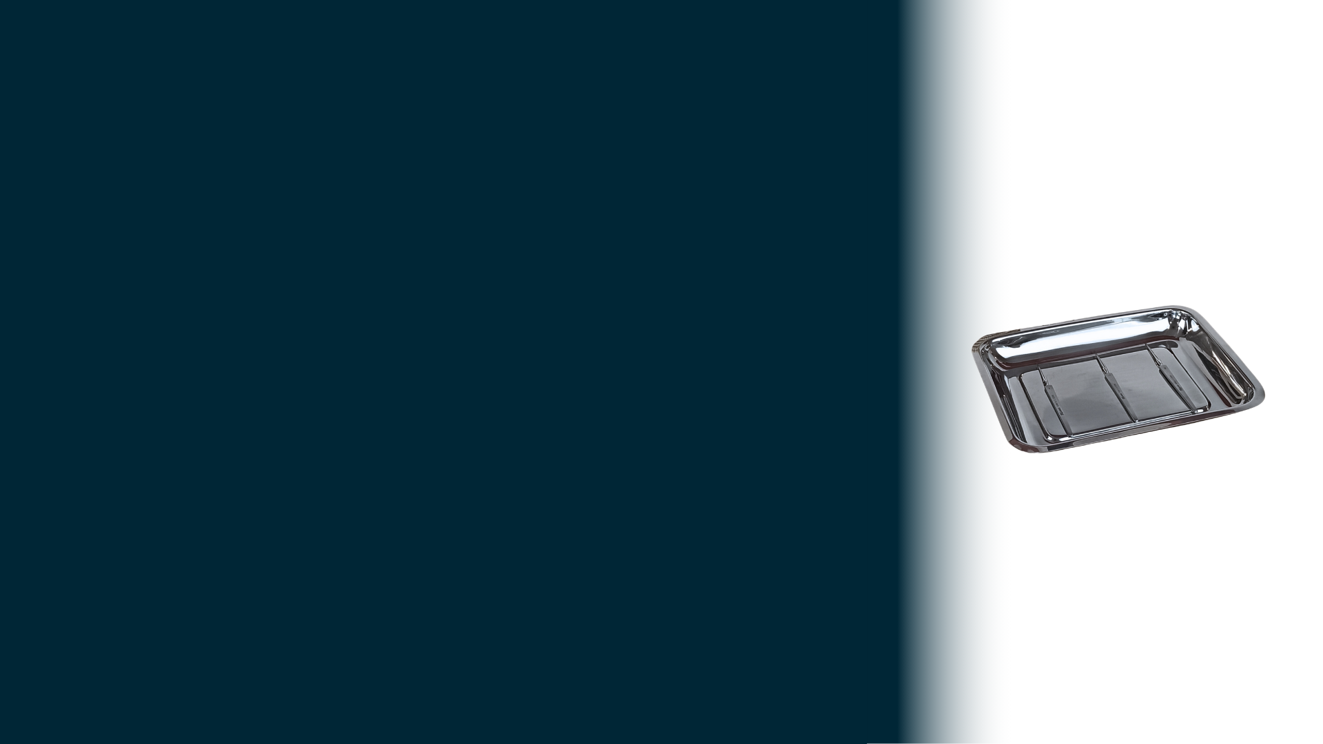 Bandeja rectangular de acero inoxidable.